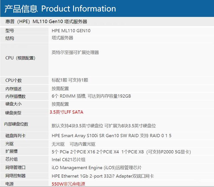 适用机型 | ML 110GEN10 | ||