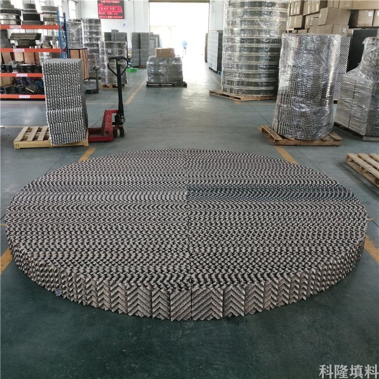 金属孔板波纹填料具有通量大、阻力些效率高、抗堵能力强的优点。适用于化工、化肥、炼油、石油化工、天然气等工业的通用性规整填料。