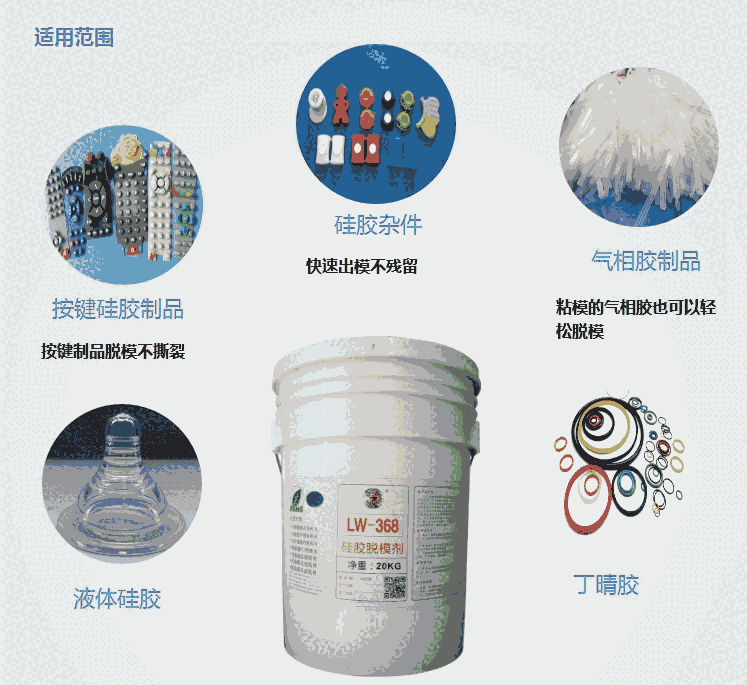 本公司LW-369脱模剂系采用全部进口原材料经特殊工艺处理精制而成,在橡胶、塑胶、EVA成型过程中使用LW369脱模剂,能迅速达到离模清洁的脱模作用,并且能增加生产速率及降低模具保养维修费用,同时也能使金属与非金属间保有优良的润滑作用,由于极低的表面张力及优越的热安定性,本产品通过SGS认证,尽可放使用。