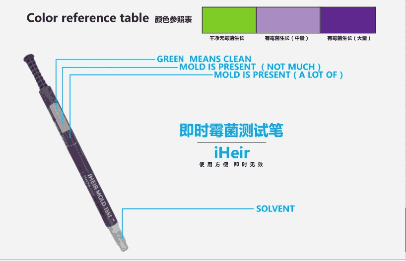 艾浩尔霉菌检测笔(霉菌测试笔)是广州艾浩尔防霉抗菌公司研发生产出的霉菌测试工具,它是用于材料表面采集样本,查看该产品上面是否感染霉菌,通常的说也就是查看材料发霉的风险,当预知产品上感染大量霉菌,这个时候可以通过有效的防霉处理,降低产品发霉产生的损失。