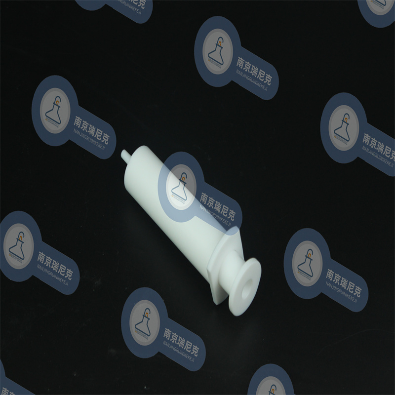 四氟注射器用于抽取或者注入气体或者液体,四氟注射器由前端带有小孔的针筒以及与之匹配的活塞芯杆组成,用来将少量的液体或其注入到其它方法无法接近的区域或者从那些地方抽出,在芯杆拔出的时候液体或者气体从针筒前端小孔吸入,在芯杆推入时将液体或者气体挤出。