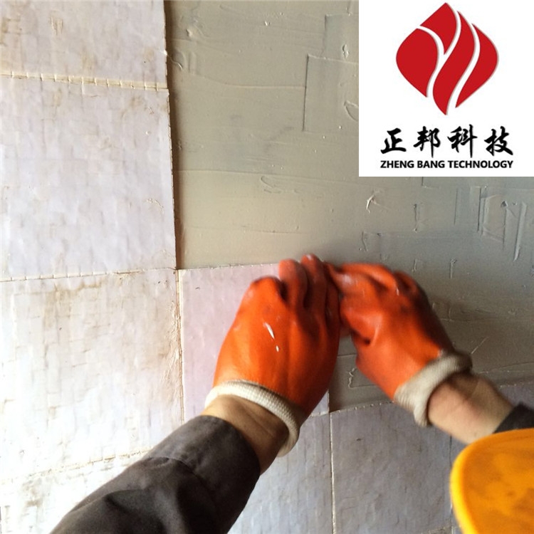 4、粘贴:将刮胶的陶瓷片按顺序贴在施工部位,用橡皮锤轻轻敲实,特别注意每块陶瓷片都能均匀粘贴在钢板上。陶瓷片装贴需紧密贴紧筒壁,陶瓷装贴应平整并应尽可能形成光滑面,每相邻的陶瓷块的高低差应小于0.1mm。