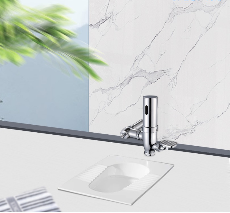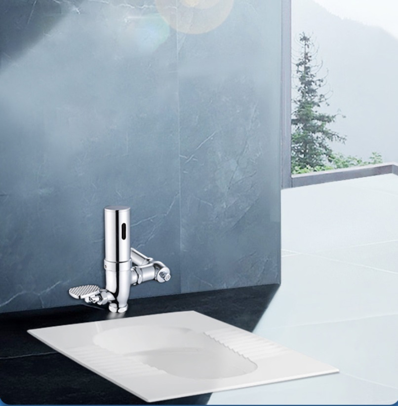 公共洗手间自动大便感应器明装黄铜镀脚踩冲便器蹲便池冲水阀