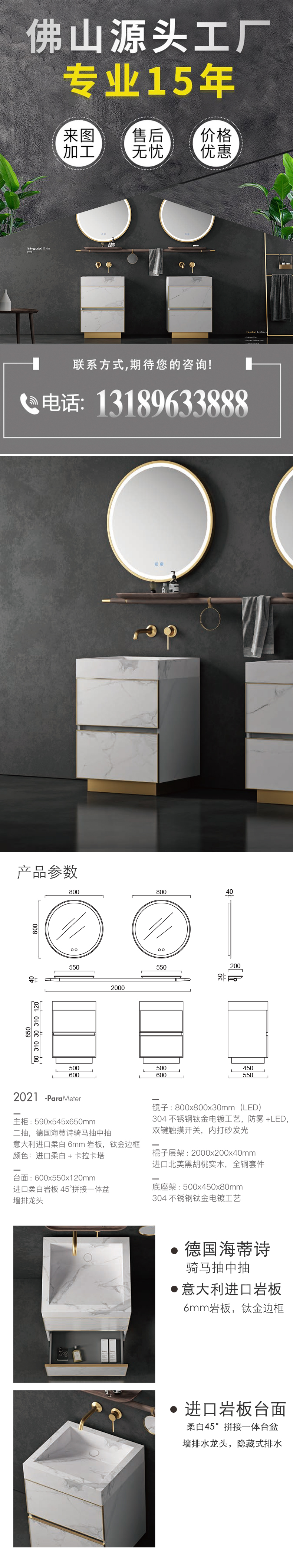 组合形式 | 落地岩板洗手盆柜 LED镜子 层板 | ||