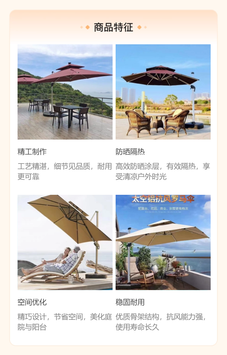 户外休闲遮阳伞高端庭院遮阳罗马伞是家人乘凉休闲必选的