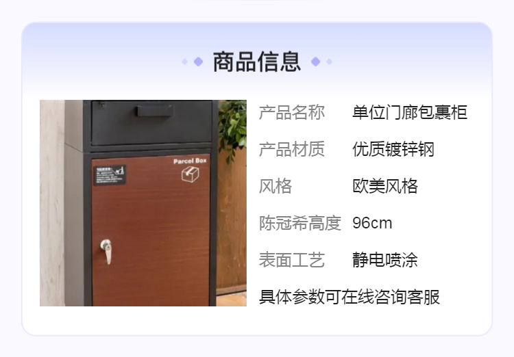 适用场合 | 单位门廊 庭院门厅 公寓门口 | ||