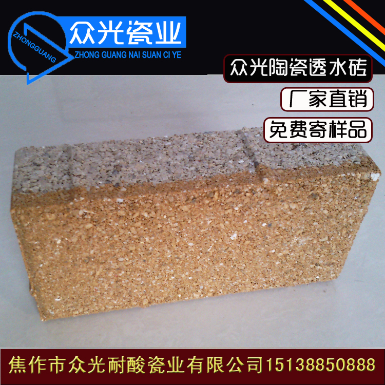 众光陶瓷透水砖是采用矿渣废料、废陶瓷为主要原料,经二次布料成型,高温烧制而成,是具有保持地面的透水性、保温性、抗压、防滑、抗寒、耐风化、降噪、吸音、强度高、可重复使用等特点的绿色环保产品。是解决城市“热岛效应”、地表硬化、防止城市内涝、营造高质量的自然生活环境、维持城市生态平衡的新型环保建材。
