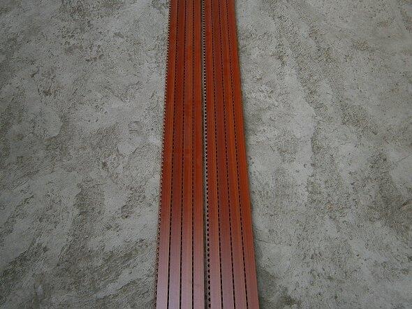 槽木吸音板是一种在密度板的正面开槽、背面穿孔的狭缝共振吸声。常用于墙面或天花装饰