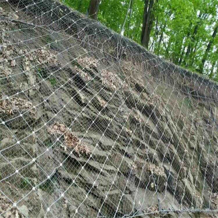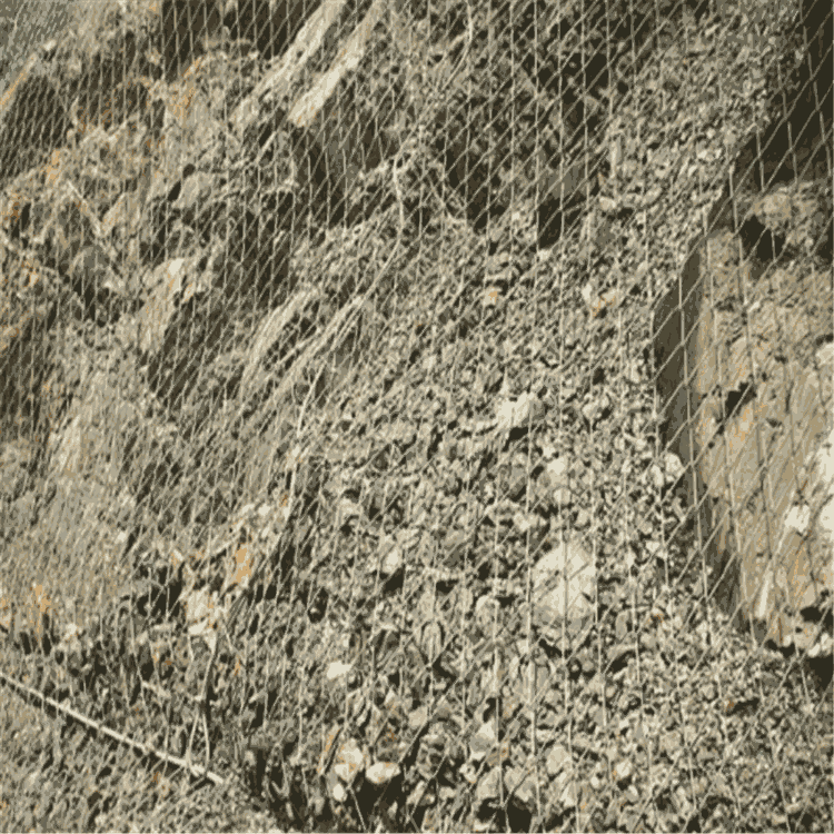 以钢丝绳网为主的各类柔性网掩盖包裹在所需防护斜坡或岩石上,以约束坡面岩石土体的风化脱落或损坏以及为岩崩塌(加固效果),或将落石操控于必定规模内运动(围护效果)。