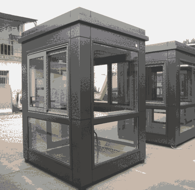 用料说明:(1)立柱:采用80*80*1.5不锈钢立柱(2)框架:用45*75*1.2mm不锈钢管,不锈钢门,不锈钢窗5+5+5中空玻璃(3)屋面:用不锈钢1.0mm焊接而成,中性胶密封(4)室内吊顶:豪华pvc吊顶,内有工作台面(5)墙体用铝塑板+挤塑板+木工板(6)底板用铁方通做基础,铺设2.0mm防滑钢板,上铺豪华复合地板(7)岗亭焊接缝采用中性耐候胶密封,减少漏雨和渗水(8)内配置:照明灯具,电源插座,漏电保护开关,空调主架。