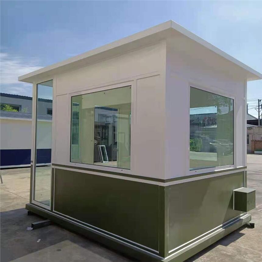 钢结构岗亭的承重结构均为框架型钢结构,整体结构构件选材和焊接符合标准,**钢骨架结构,壁厚均在2mm以上,经防腐处理,吊装或铲装移动时,可保证产品牢固性。3、亭内地面为统一平面,内墙及屋顶同样采用钢结构荚芯板,防火、防腐蚀且便于清洁。外墙采用钢结构荚芯板,色彩稳定、雨水冲喷洗即可除尘,**、不剥落;抗紫外线辐射和水汽酸碱侵蚀,不宜老化;具有韧性、不易损坏,隔音隔热性能强,抗外力冲击不易碎裂损坏;自熄阻燃达到难燃级标准。通常来说,单人使用的岗亭以1.2×1.5×2.34m或1.5×1.5×2.35m居多,虽然也有*小一点的尺寸(例如:1.2×1.2×2.35m),但是尺寸过小的话,会造成工作人员在岗亭内觉得压抑,不适合长时间留守在岗亭内。双人使用的岗亭尺寸通常为1.5×2.0×2.35m,以此类推,2.0×2.0×2.4m的岗亭适合三人使用,而2.0×3.0×2.5m的岗亭则适合4-5人使用,*大尺寸的岗亭就要根据安装场地大小来定,通常除了要考虑亭体的尺寸大小外,还要考虑顶盖延伸出来的位置,以免场地过小导致岗亭无法摆放。