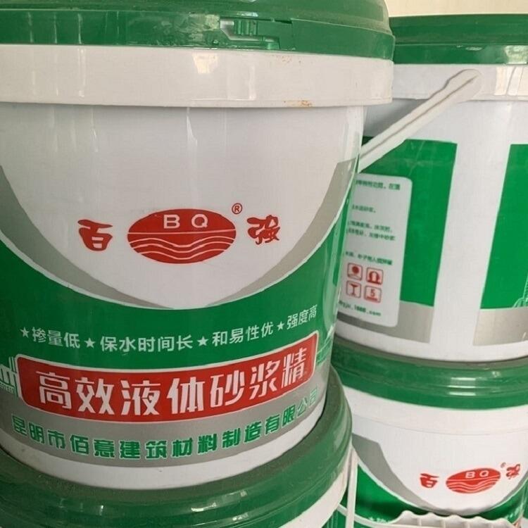 百强牌BY-100S型液体高效砂浆精昆明砂浆精 液体砂浆王 塑化粉 岩砂晶 抗裂防水剂砂浆添加剂:本品是一种超浓缩液体产品,它能改变原有砂浆外加剂的特性,本品具有引气、增稠、保塑、提高砂浆使用性能等独特功效。在混合砂浆中完全代替石灰,还能节约砂浆中的水泥用量,不但能保证强度还能提高耐久冻融性及抗渗、抗裂效果。