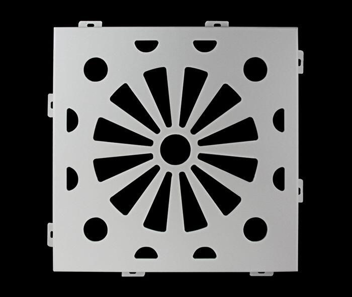 板型:有平板形、折板形、锯齿形、波浪形和短边折板形之分。随着穿孔率的增强,穿孔板的强度减弱。板型的选择影响穿孔铝板的强度,继而影响穿孔板模块的大小、起连接作用的龙骨数量、整体效果等。