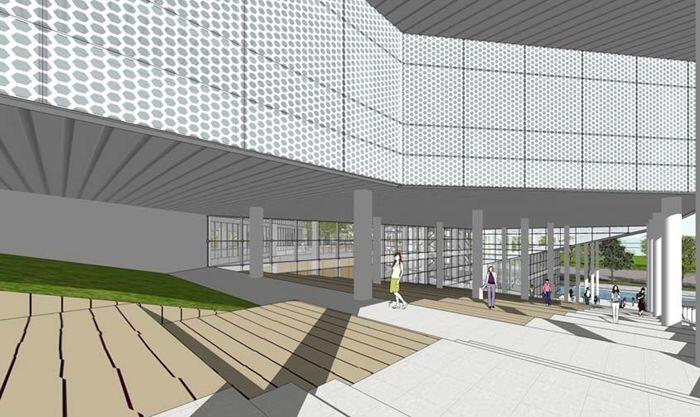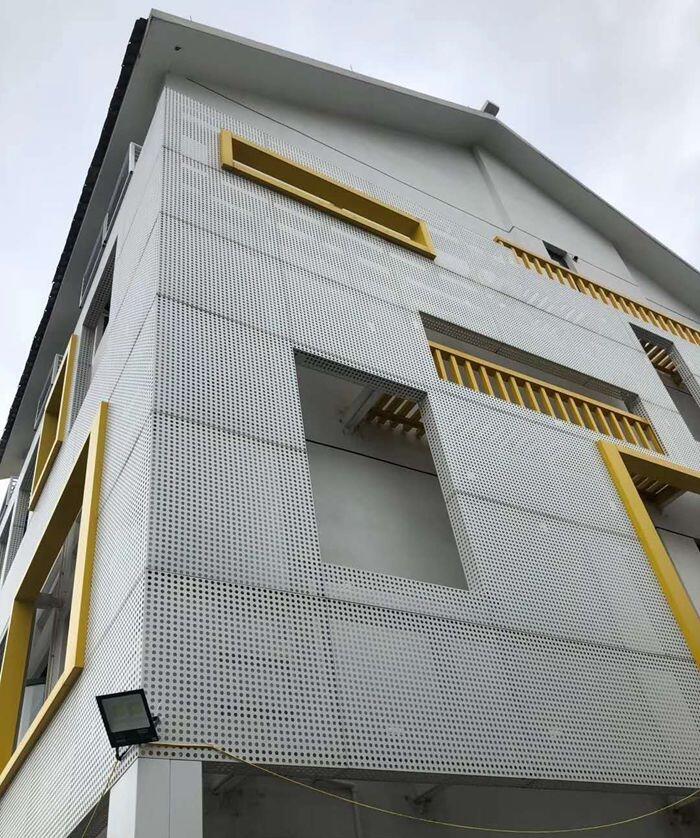 穿孔铝板可以作为表皮覆盖建筑,在城市街道空间和建筑内部之间形成半透明的界面,因其穿孔的特性并不会过多影响建筑内部的使用要求.同时可以统一立面效果,形成完整、有秩序的城市界面。