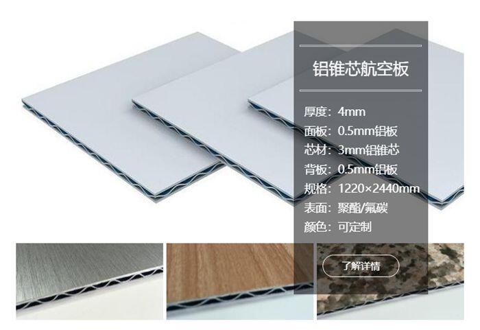 1、经济性:铝锥芯板采用三层复合结构,表层铝板较薄,但是强度依然由于同等厚度的单层铝板,这样减少了铝材用量,降低了成本造价。