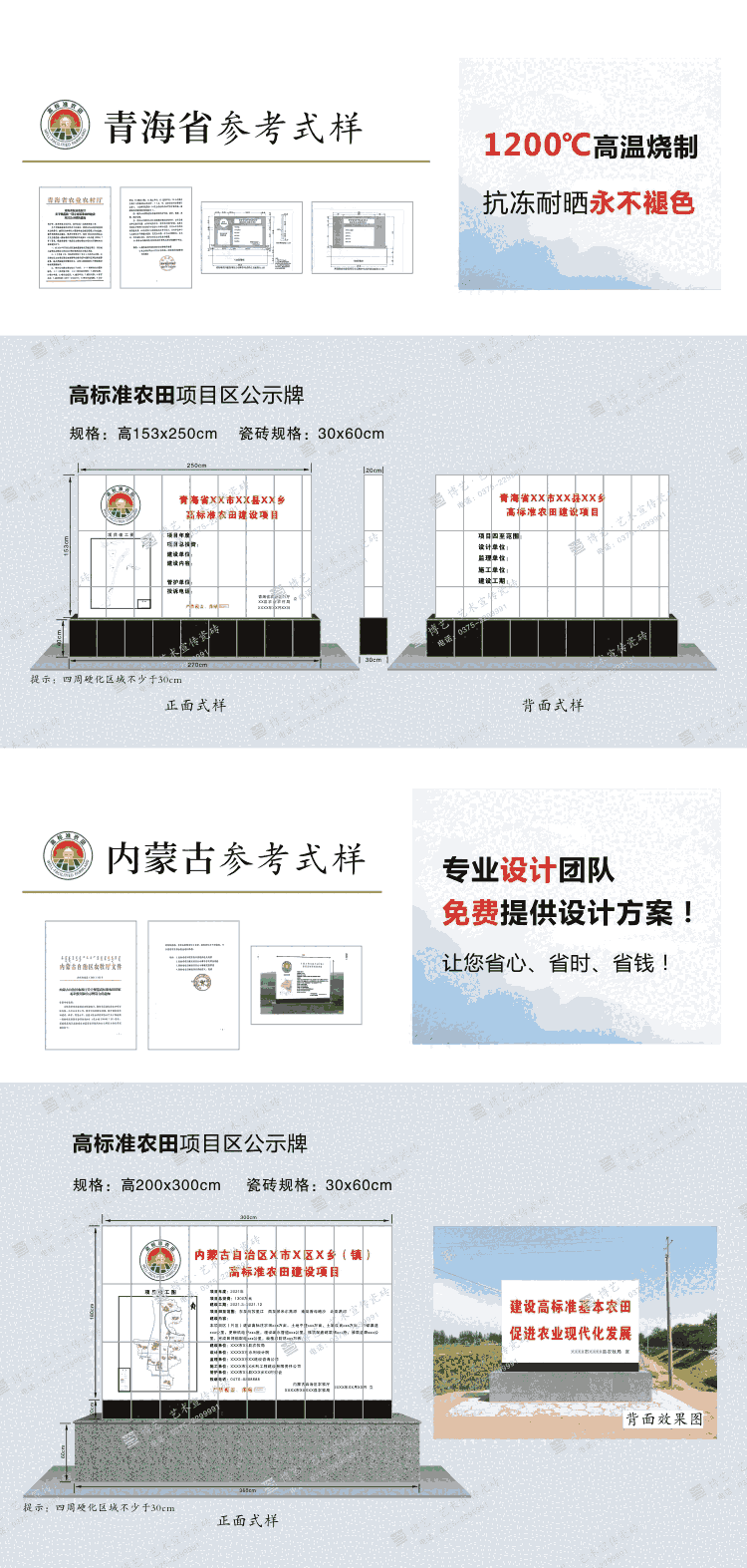 定制高标准农田标识 宣传牌  高标准农田项目标识牌制作厂家 高温烧制 不褪色