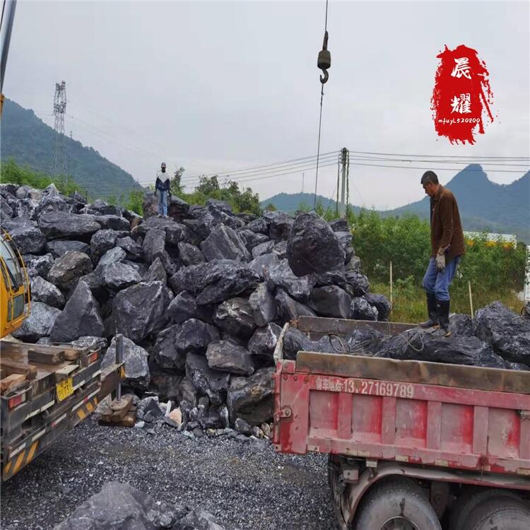 黑山石枯山水造景 园林景观奇石 假山水池驳岸