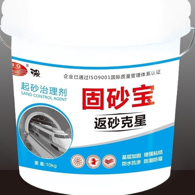 百强牌BY-0011型固沙宝(地面起砂 起灰治理剂)又称墙体固化剂 地面固化剂:本产为单组份水性乳液状,主要采用聚合物乳液及助剂为主要原料,二次反应形成封闭性、固化性极强的强化胶,渗透性极强,固化快,强度高,膜块抗温变、抗收缩、抗老化性能强;涂刷于强度低的基层科渗透10mm;涂刷无漏角,施工简单,可滚涂、喷涂、涂刷于强度低的砼与砂浆基层面上可达到渗透的效果,彻底强化基层,提高基层硬度。胶膜抗温变、抗收缩、抗老化性增强,常温状态下表干4小时,实干24小时,低温状态下表干8小时,实干48小时以上干燥时间仅是实验,实际,因温度较低或湿度较大将延缓干燥时间,待该胶膜完全干燥后方可做下一道工序。