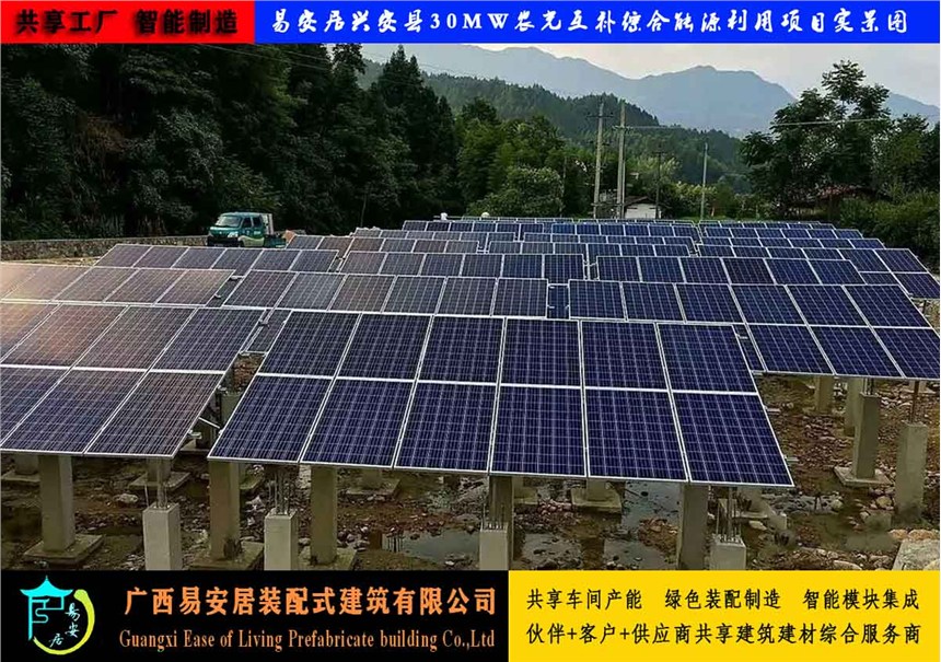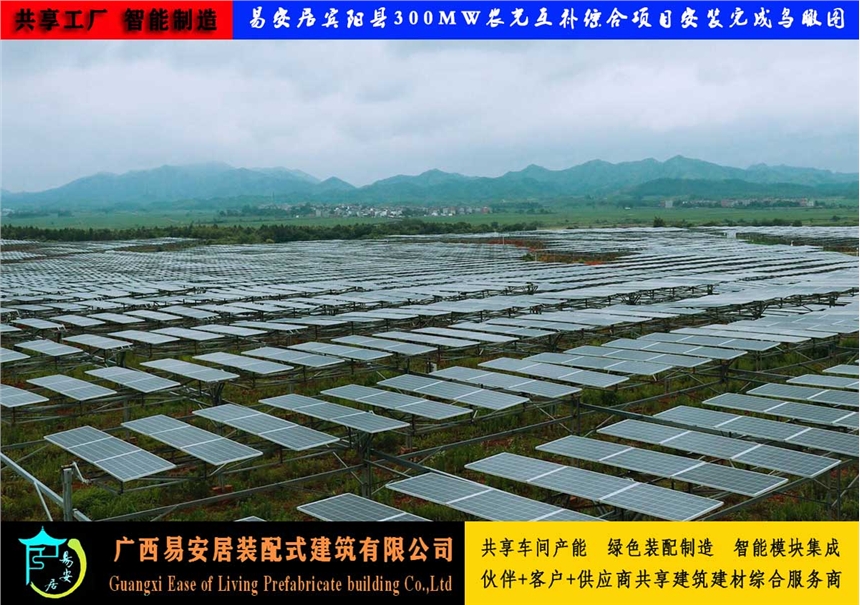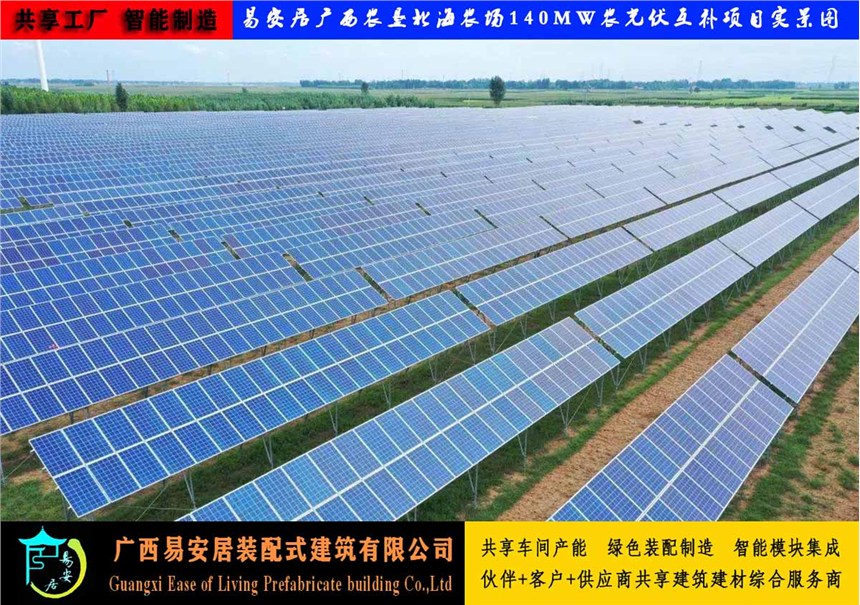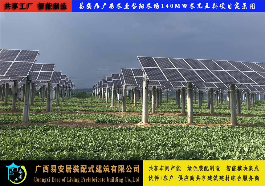 广西易安居装配式建筑有限公司是较早开展BIPV农光光互补3P项目的企业之一。公司生产制造的钢结构光伏支架,是装配式BIPV农光互补项目建设的主要材料和构件。公司设计制造农光互补项目,每亩装机容量可达40千瓦。