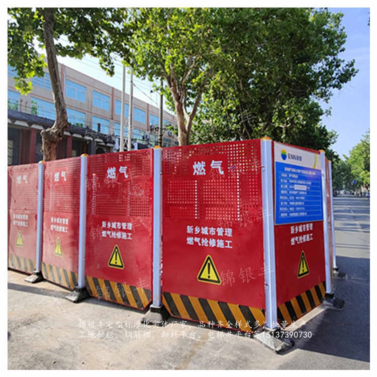 严禁张贴、涂写垃圾广告。【新乡施工围挡厂家河南工地施工围挡-锦银丰】安装随着工程的进度,必须在完成工程的断面施工前,以路面的一半为基准。围板的应整洁稳定,应符合不阻碍道路交通和行人通行的原则。除了出入口外,还必须连续封闭,以保证施工现场与外界的隔离。围护之前,锦银丰建议前应设置交通引导标志。