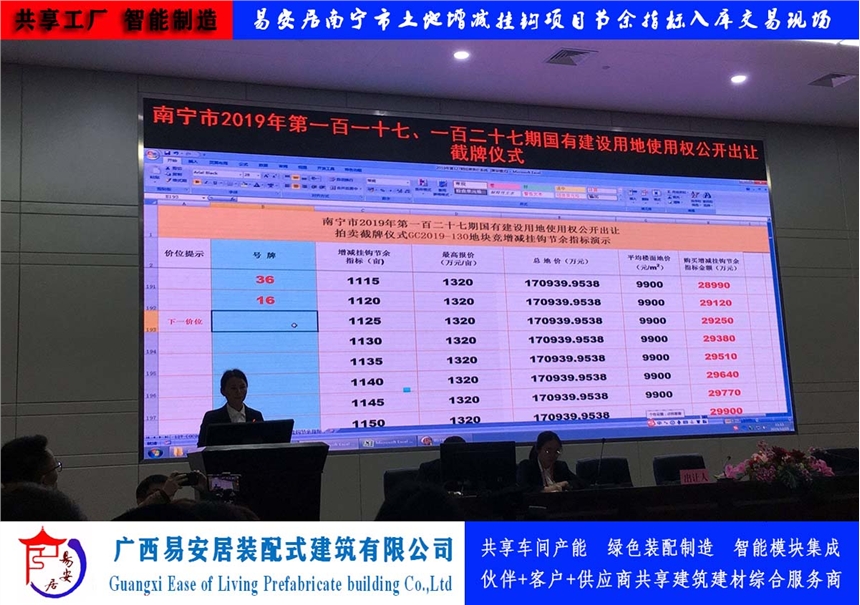 广西易安居装配式建筑有限公司可为增减挂钩项目节余指标备案入库交易服务,熟悉<广西壮族自治区城乡建设用地增减挂钩节余指标交易办法><广西建设用地复垦指标交易和使用管理办法(试行)>,参与各地市<增减挂钩指标交易管理实施细则>制定的咨询服务,熟悉<增减挂钩项目指标备案入库交易>流程及报审报批备案程序。有一定地交易受让方的信息渠道,与指标需求方有一定的合作基础,能够做到后入库存先交易。严格按照出让申请、出让核查、出让公告、竞买申请、竞买核查、交易竞价、成交确认、成交公示和合同签订等程序公开公平进行,并完善相关手续。