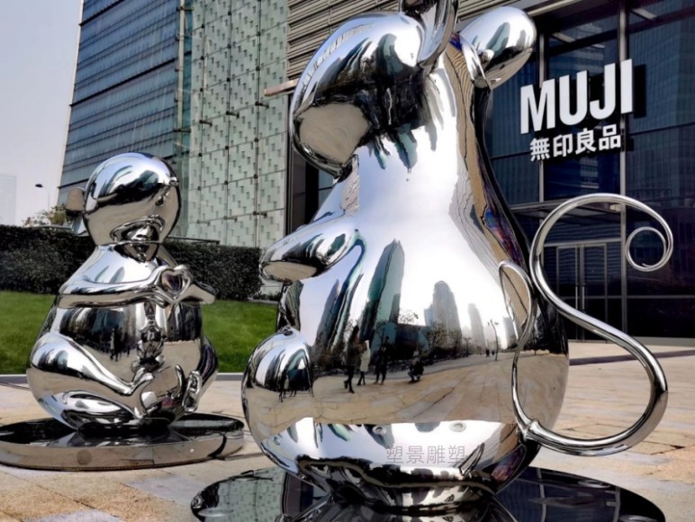非你莫鼠景观雕塑 不锈钢灯光鼠雕塑 比心鼠摆件