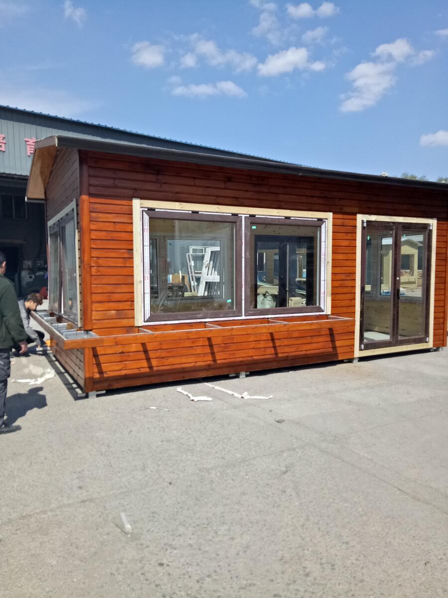 ⑥ 后部开启式塑钢翻窗5个,室外顶棚雕花板,室内顶棚pvc,钢结构百叶门喷漆(门玻璃上贴膜)