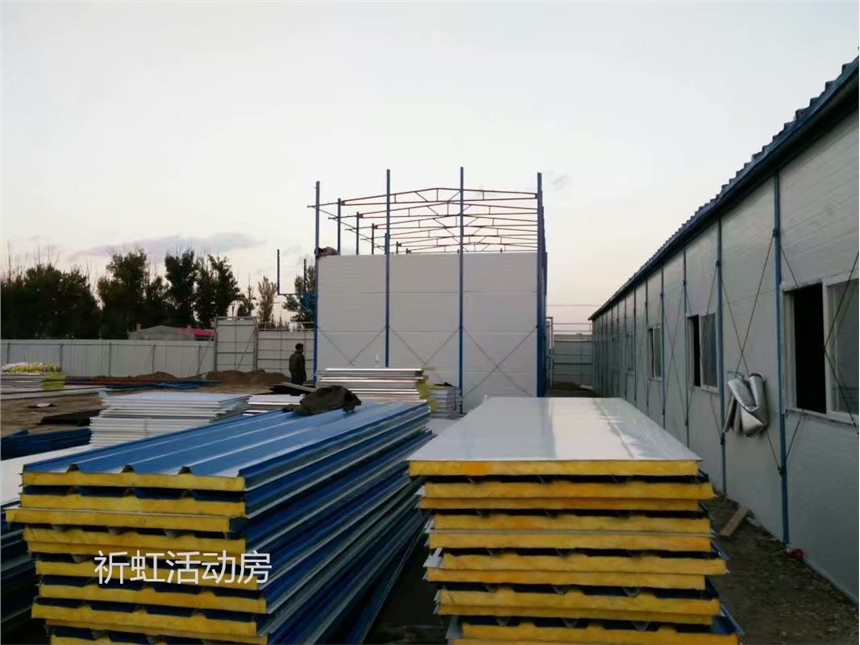 岩棉夹心彩钢板,特点:隔热保温好,安装、拆迁方便,产品特别适合大型厂房,建设工程指挥部、项目经理部、市内建筑工地,办公、职工宿舍、伙房、餐厅、仓库、水泥库及大型工地的整体性生活区用房。