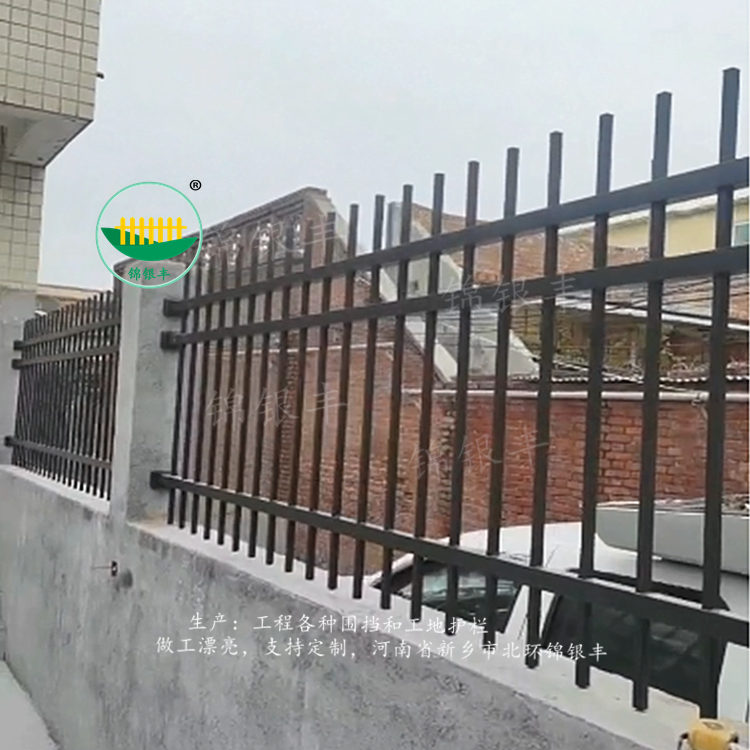锌钢防爬栏杆 围墙栅栏 小区铁艺围栏 喷涂焊接护栏 焊接式 喷塑 锌钢 小区学校 厂区 厂房 围墙铁艺 防爬围栏 组装围墙栅栏 三横杆锌钢围栏 厂区方管焊接防爬护栏。作为护栏源头工厂,新乡锦银丰专注于锌钢护栏的生产与制造。锌钢材质护栏具有优异的耐腐蚀性和高强度,为围墙护栏的长期使用提供了坚实保障。具备灵活性,可组合、可焊接的特性,能够满足不同场景下的安装需求,无论是复杂的地形还是独特的建筑风格,都能轻松适配。