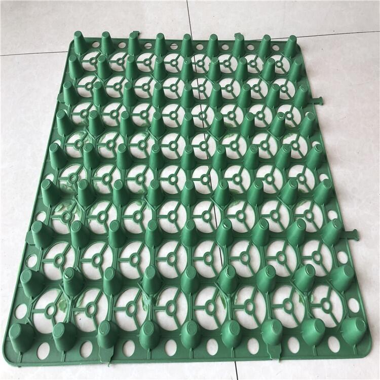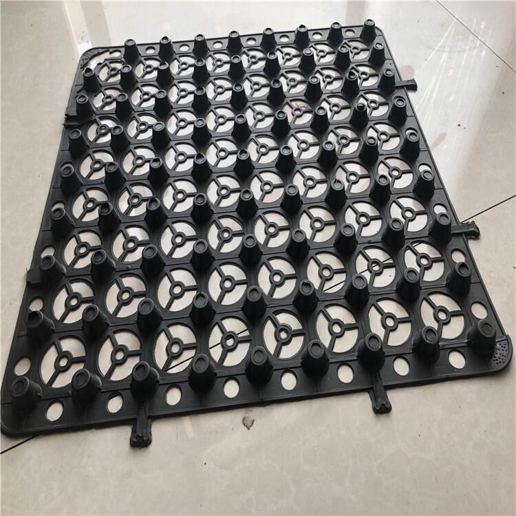 蓄排水板的装置施工依据规划图要求铺设,板材选用扣合的搭接方法。