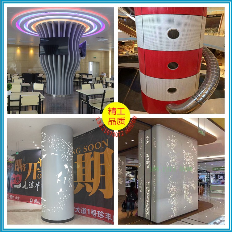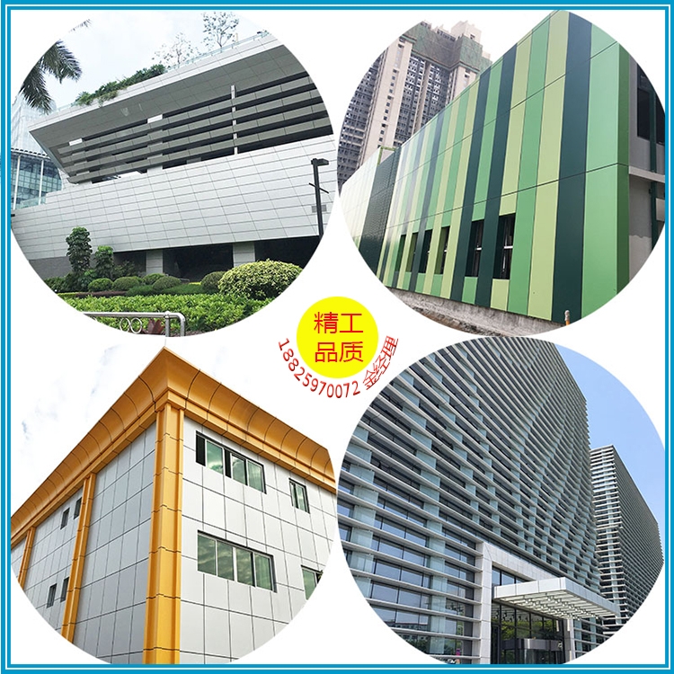粤艺佰铝单板构造主要由面板、加强筋和角码组成。角码可直接由面板折弯、冲压成型,也可在面板的小边上铆装角码成型。加强筋与板面后的电焊螺钉连接,使之成为一个牢固的整体,极大增强了铝单板幕墙的强度与刚性,保证了长期使用中的平整度及抗风抗震能力。铝单板通过吊挂于建筑主体结构外侧 的轻质的围护墙面,使其形成大面积连续墙面,称之为铝单板幕墙。户外用铝单板厚度一般选择 2.5mm、3mm;低层和裙楼部分可选择 2.0mm 厚度,室 内墙面与吊顶用时可选择薄1.0mm 或1.5mm。包柱铝单板 弧形铝单板定制