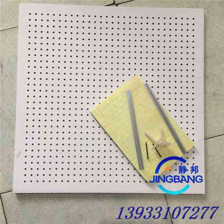 穿孔石膏板是吸声穿孔纸面石膏板和吸声穿孔装饰石膏板的统称。石膏板本身不是吸声功能突出的材料,在板面上冲孔打眼之后,使每个孔跟与其背后的空气层构成共振吸声结构。为了防止杂物通过穿孔散落,通常在板背面粘贴一层膜状材料(如皱纹纸、桑皮纸、微孔玻纤布等),起着一种薄膜共振吸声作用。如果再在其后装置一些多孔吸声材料 (如玻璃棉、矿棉、泡沫塑料等),能进一步提高吸声,尤其是对高频的吸收。因此,在选择时,首先应考虑其吸声功能,其次还应对其规格尺寸和图案色彩作出选择。