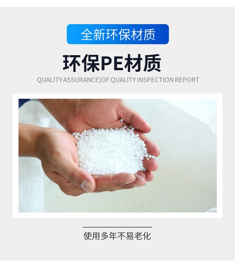 8、重量轻而且结实--以PP或HDPE为原料,添加着色剂及抗老化剂;