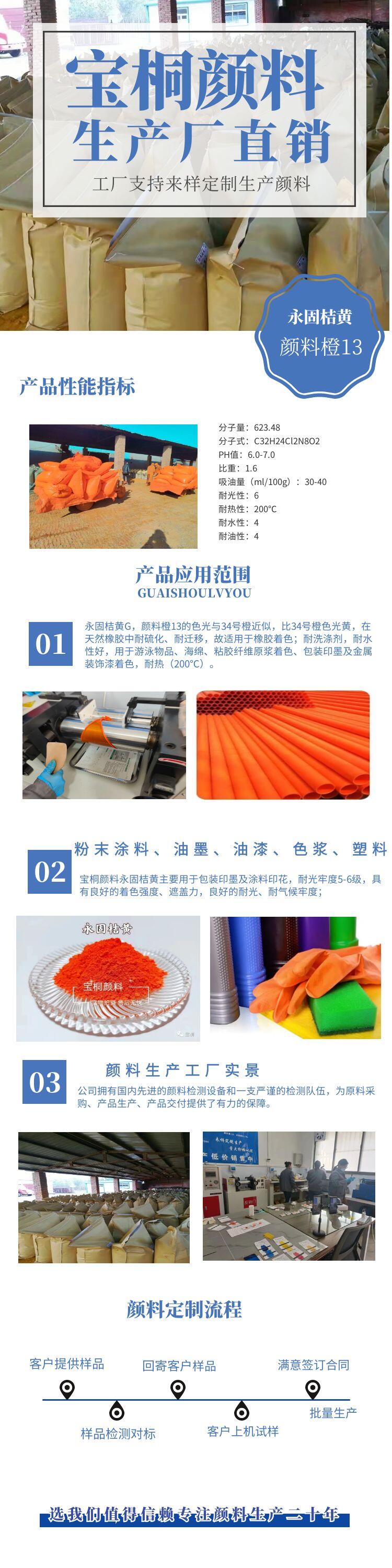 工业管道采用有机颜料永固桔黄着色力高耐候