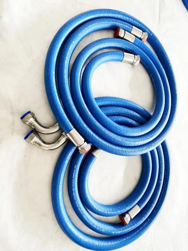 外 胶:CSM氯磺化聚乙烯合成橡胶,耐候性好、耐磨损、RMA-B级耐油性、耐臭氧、阻燃。 (2"-3"外表为布面,1寸以上可以选择布面,柔韧性更好)(臭氧实验:75+/-2℃ 高温试验200小时无裂缝)
