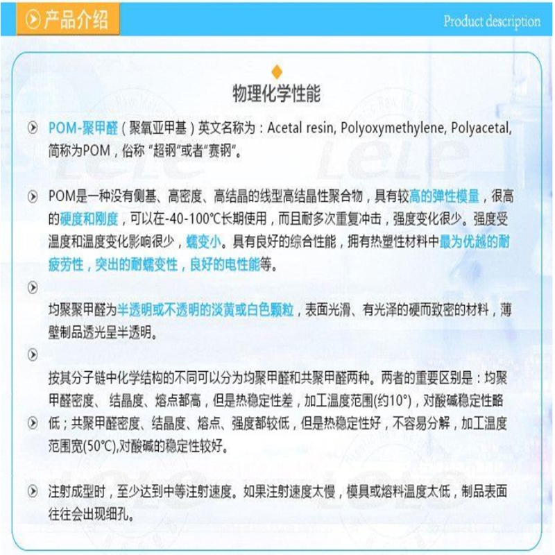 有机化学聚甲醛(Polyoxymethylene)学名聚氧化聚甲醛,简称POM又称赛钢、特钢。POM是一种表面光滑,有光泽的硬而致密的材料,淡黄或白色,聚甲醛是一种没有侧链、高密度、高结晶性的线型聚合物。按其分子链中化学结构的不同,可分为均聚甲醛和共聚甲醛两种。两者的重要区别是:均聚甲醛密度、结晶度、熔点都高,但热稳定性差,加工温度范围窄(约10℃),对酸碱稳定性略低;而共聚甲醛密度、结晶度、熔点、强度都较低,但热稳定性好,不易分解,加工温度范围宽(约50℃),对酸碱稳定性较好。是具有优异的综合性能的工程塑料。有良好的物理、机械和化学性能,尤其是有优异的耐摩擦性能。俗称赛钢或夺钢,为第三大通用塑料。 适于制作减磨耐磨零件,传动零件,以及化工,仪表等零件。