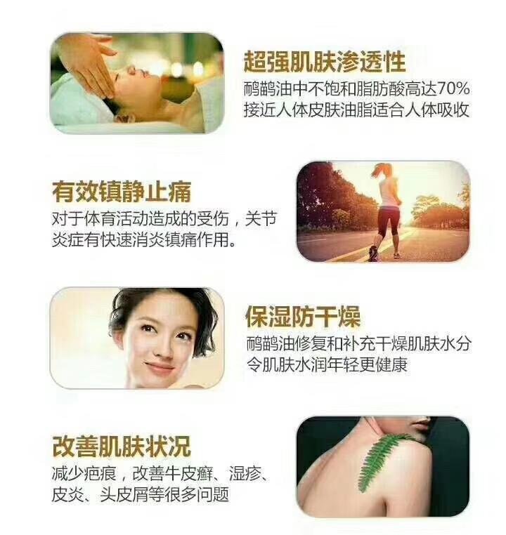 消炎止痛--鸸鹋油用于无菌性的炎症。无菌性炎症的特点是细胞充血肿胀,压迫末梢神经产生的疼痛。使用鸸鹋油可以消除炎症,使充血消失。无菌性炎症如鼻炎、鼻窦炎、中耳炎、腮腺炎、眼干、眼涩、眼流泪、假性近视 哮喘、头痛、偏头痛等,以及无菌性的骨骼疾病如肩周炎、颈椎病、腰椎尖盘突出、脚踝骨扭伤等。目前国内乃至世界上治疗无菌性骨骼疾病有两种手段
