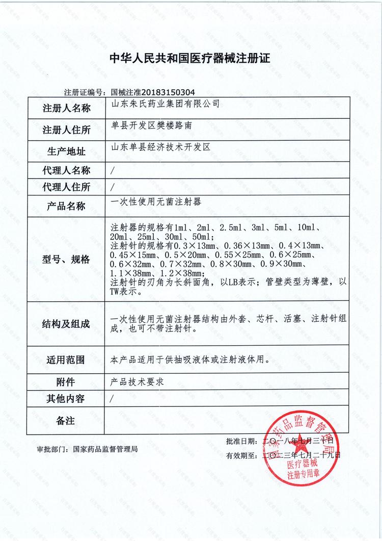 产品名称 | 一次性使用无菌注射器 | ||