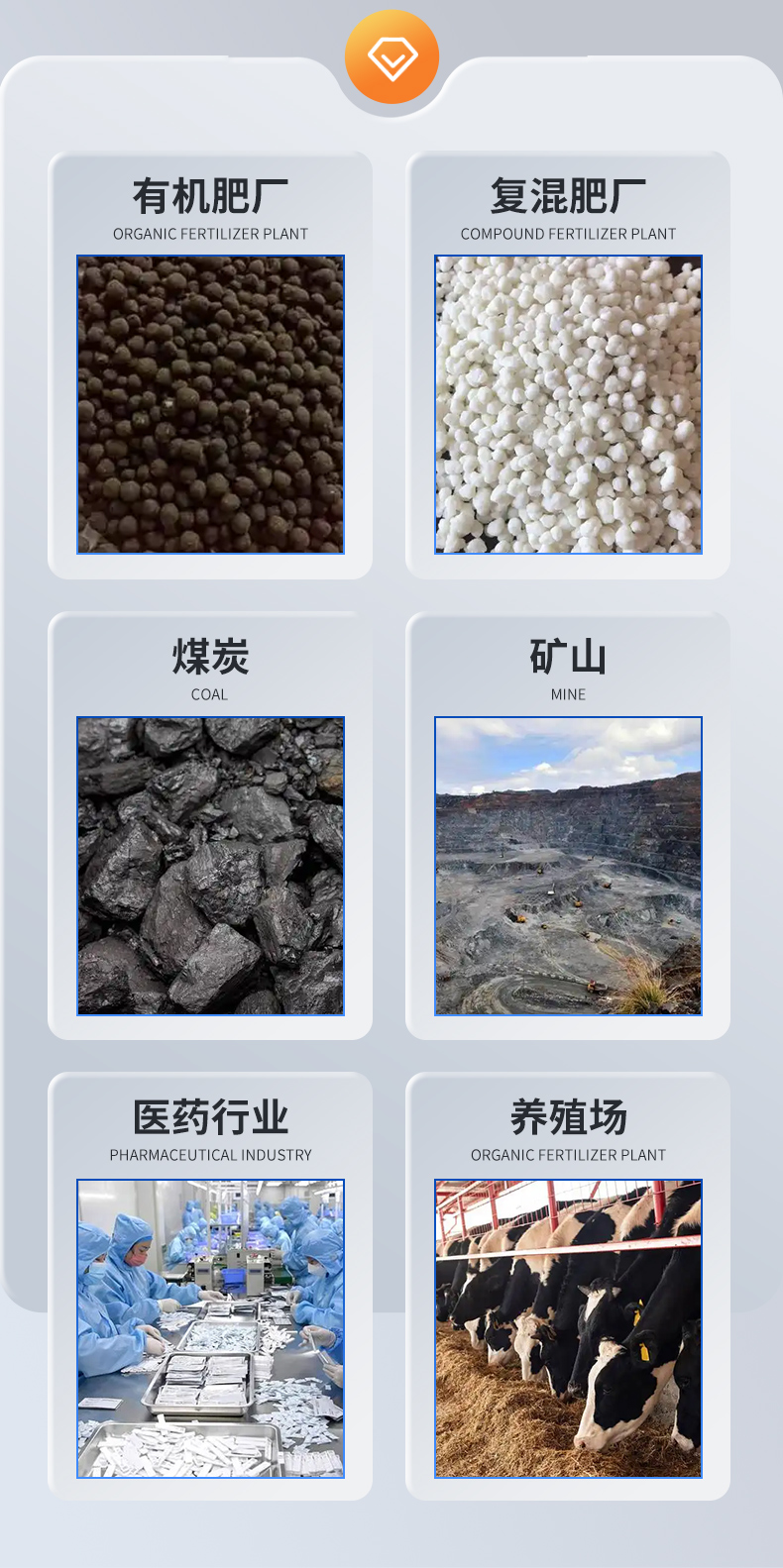适用领域 | 草灰,褐煤,有机肥污泥,秸秆等为原料的生物有机肥颗粒抛圆 | ||