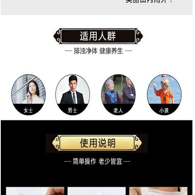使用时间 | 初用需贴敷1~3疗程,毒素排净后每周贴敷1-2次巩固 | ||