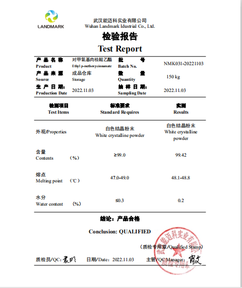 产品名称 | 对甲氧基肉桂酸乙酯 | ||
