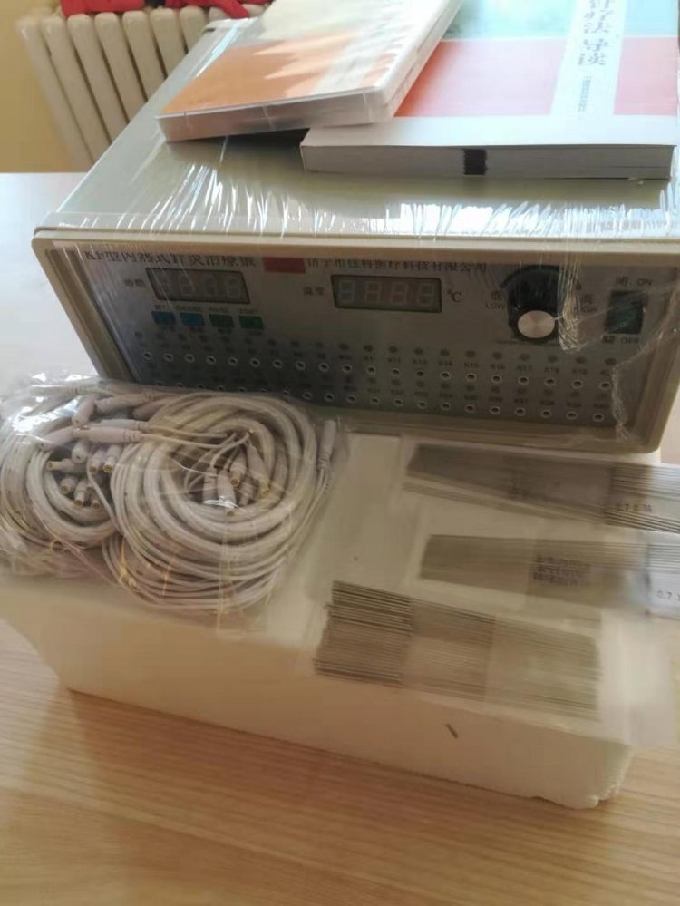 内热针治疗仪由内热针治疗仪器、连接线和针具三个部分组成,治疗仪主机是内热针的供能设备,该设备可以根据需求选择同时提供10/20/40支内热针的稳定能量,同时以数字形式显示,并能在38℃-60℃的范围内调节控制,治疗仪主机按常规把针体的发热温度设置在38℃-60℃之间进行无级调控温度,具体情况可由医师根据病人病情的需要进行适当调整,以保持所需要的恒定治疗温度。