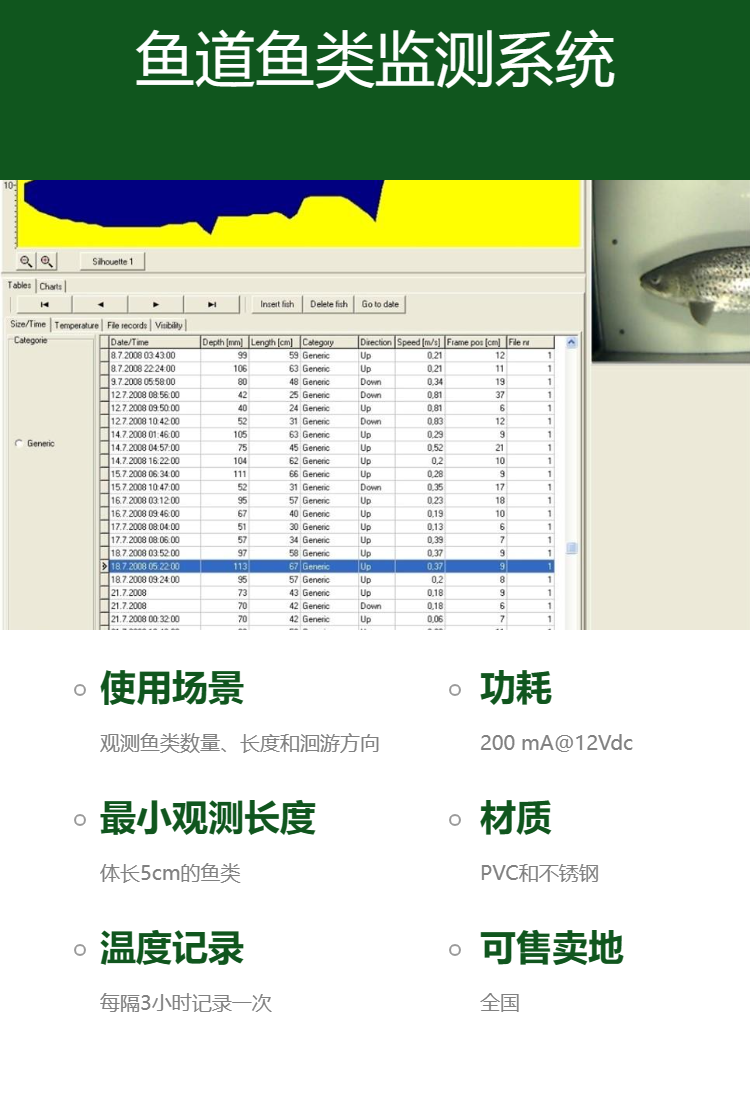 使用场景 | 观测鱼类数量、长度和洄游方向 | ||