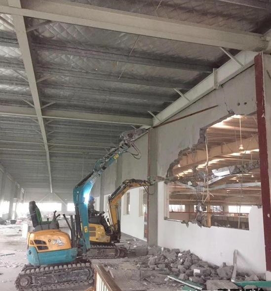 后我们不得不提到的是,在整个拆除厂房的过程中,一定要在拆除的建筑物周围拉 上适当距离的警戒线,标上“非拆除人员禁止入内”的明显字样,以避免不明情况的群众误入内部,从而发生不必要的人身伤害。