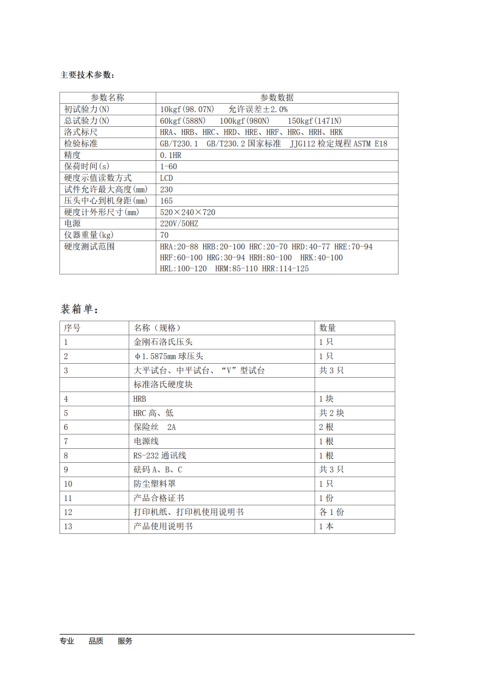 初试验力:10kgf(98.07N) 允许误差±2.0%