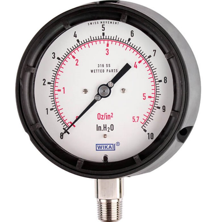 膜盒测量原理尤其适用于低压条件。增压时,膜盒元件与入射压力成比例的膨胀会传输至机芯,并会进行指示。