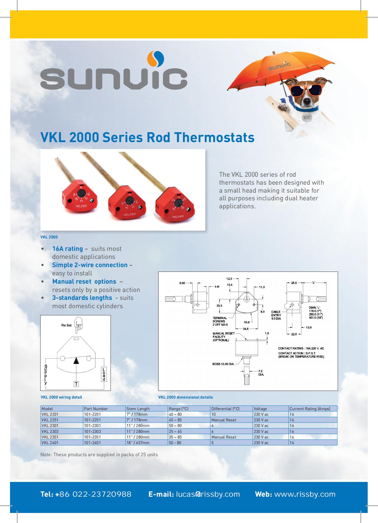 英国SUNVIC插入式温度控制器VK445155-85℃457mm