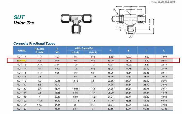 superlok进口1/8不锈钢卡套三通SUT-2、SUT-4 品牌 | superlok | ||