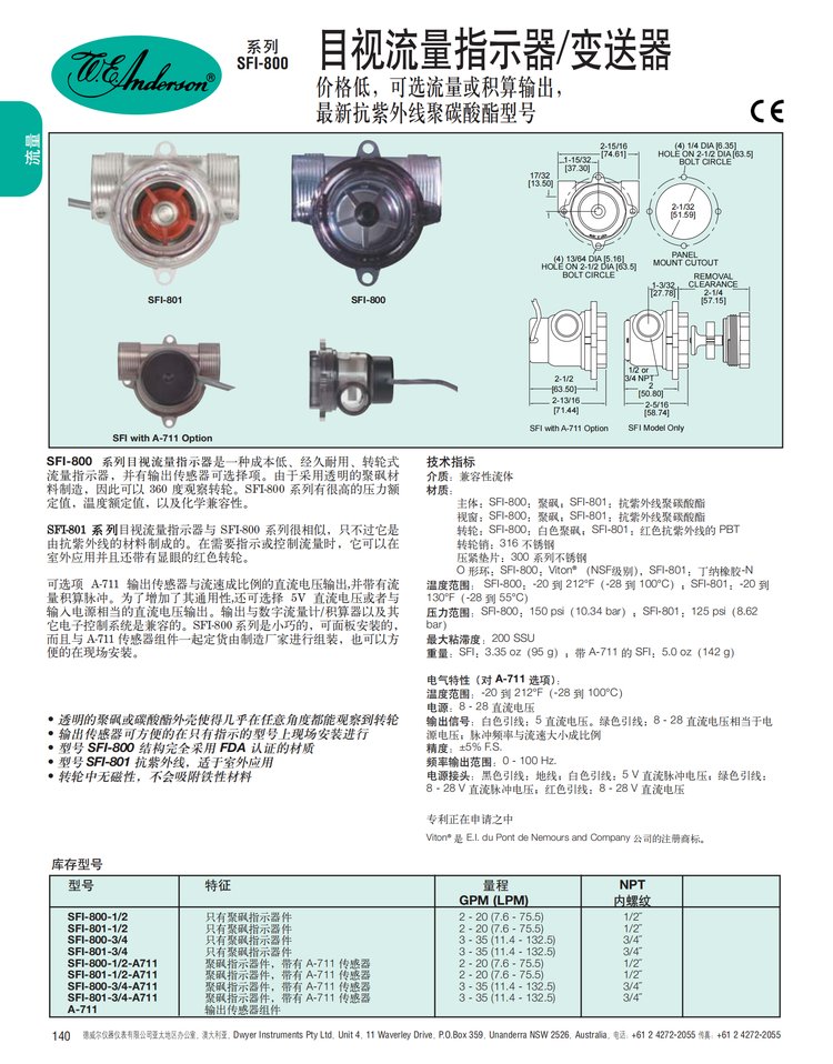 SFI-300MP-1/2-I2-BSPP可视流量指示器美国Dwyer 品牌 | 美国Dwyer | ||