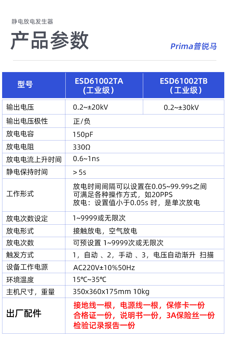 Prima普锐马ESD61002TA静电放电发生器20KV30KV产生器抗干扰试验